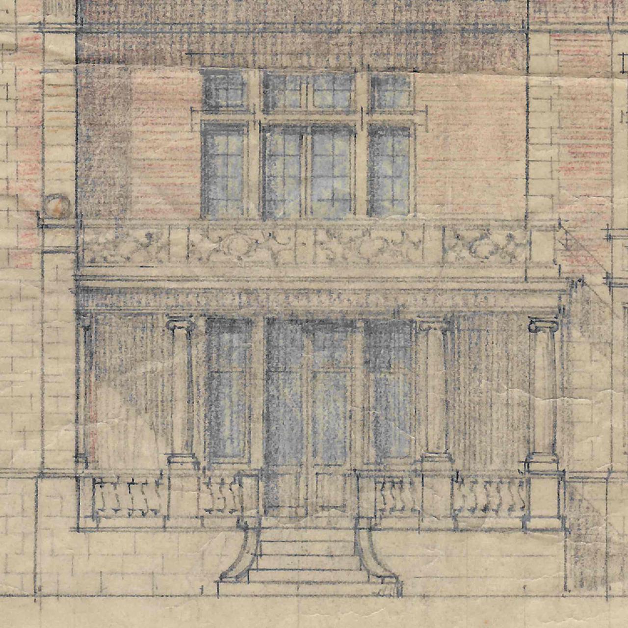 Pas évident pour le référencement mais il existe désormais une notice « Georges Hobé » dans le site WEB du GAR-Archives d’architecture. Elle est nichée dans une collection sans rapport, en tout cas sans lien compréhensible à ce stade, à savoir le Fonds Victor Verlinden. Sauvé suite à un changement de propriétaire de l’habitation de Victor Verlinden, cet ensemble documentaire contient de manière étrange et pour tout dire mystérieuse ce plan signé par Georges Hobé en 1914. Il s’agit de l’avant-projet pour une villa, en l’occurrences les façades nord et ouest, dont les seules indications contextuelles sont l’intitulé « PROPR. DE MR H. NEEF À TILLF (sic) », la signature autographe et un tampon bien connu de Georges Hobé, ainsi qu’un numéro d’index à cinq chiffres propre à ses archives.