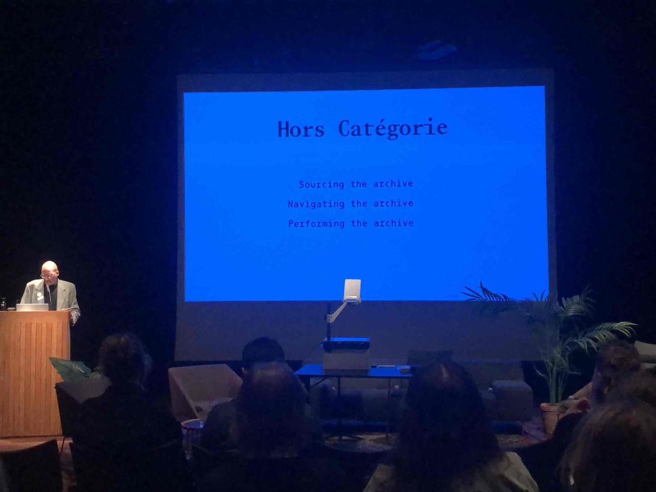 Si "Hors Catégories" était présenté dans le format convenu des journées de communications en forme de colloque, l'idée de divers focus "hors catégories", au travers du triptyque Sourcing - Navigating - Performing the Archive (visuel 1), s'est penché sur les catégories archivistiques qui explosent et se dissolvent... pour la simple raison que l'architecture concerne tout le monde, qu'elle est diffusée par tous les médias et qu'il s'en trouve des traces de toutes sortes dans toutes sortes d'archives, le tout démultiplié parfois de manière exponentielle et pas toujours rigoureuse, via la prolifération d'hyperliens, ce qui renvoie à l'aura des sources primaires, souvent ravalées au rang de cas particulier à ne consulter qu'en cas limite, si le déracinement numérique devient gênant. La déterritorialisation des preuves initiales aux fondements de l'historiographie incite à suivre le trajet Sourcing - Navigating - Performing the Archive pour y déceler les pépites d'une matière instable parce qu'en expansion et parce qu'opérée de manières de plus en plus diverses, avec prolifération d'informations subséquentes, en observant ce qu'éclaire le trajet inverse, à savoir Performing - Navigating - Sourcing the Archive.